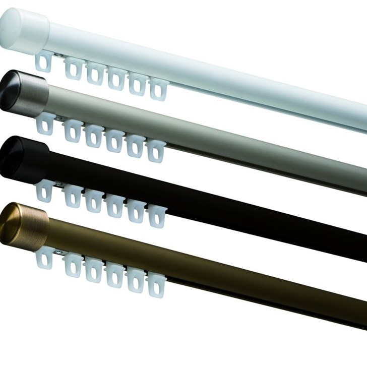 Each pole set includes your rail, end cap finials, carriers, end stop, masters, brackets, and a baton - a truly modern, all-inclusive set for easy-to-use, luxurious draperies. If you're looking for the ultimate in modern drapery hardware, upgrade to a motorized system for truly effortless operation.