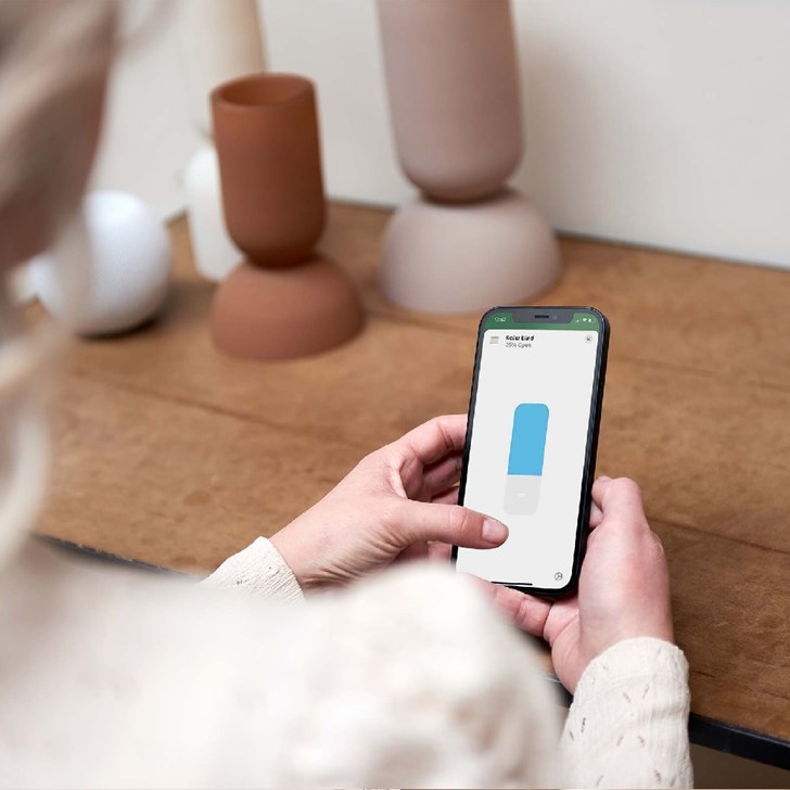 • Eve MotionBlinds Motorized Solar Roller Shade will cover your windows with chic, modern style and protect your home from harmful UV rays.
