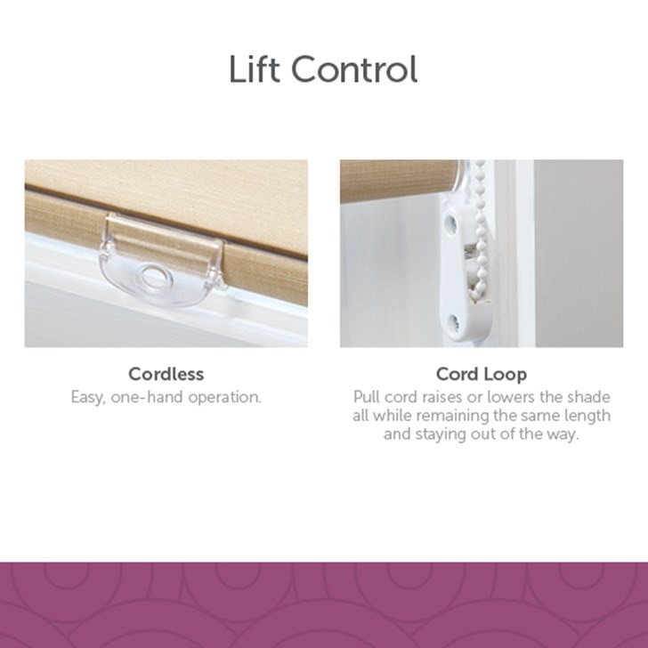 These roller shades can be operated with a continuous cord loop, or you can upgrade to a cordless or motorized lift, providing a clean look that is safer for children and pets.