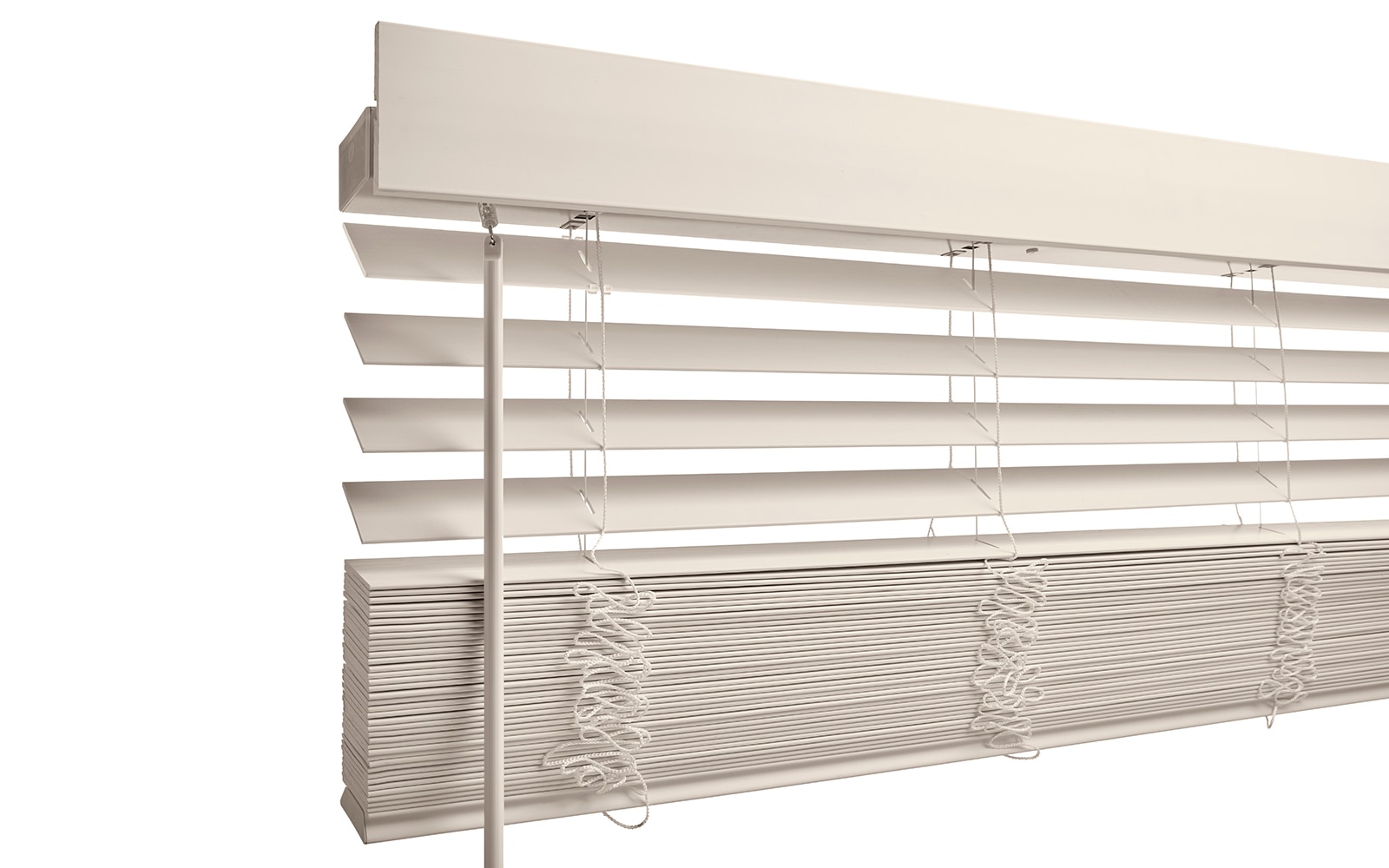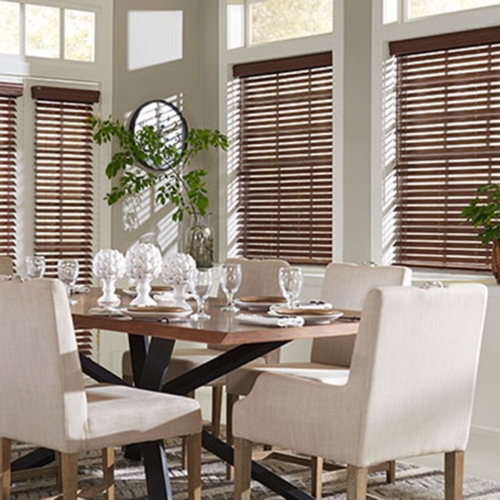 The 2-inch moisture resistant slats provide an unobstructed view when tilted open, surpassing smaller slat sizes. Choose from a selection of smooth and embossed white tones or stain colors with realistic wood grain to perfectly complement your decor. Each blind comes with a cordless lift system .