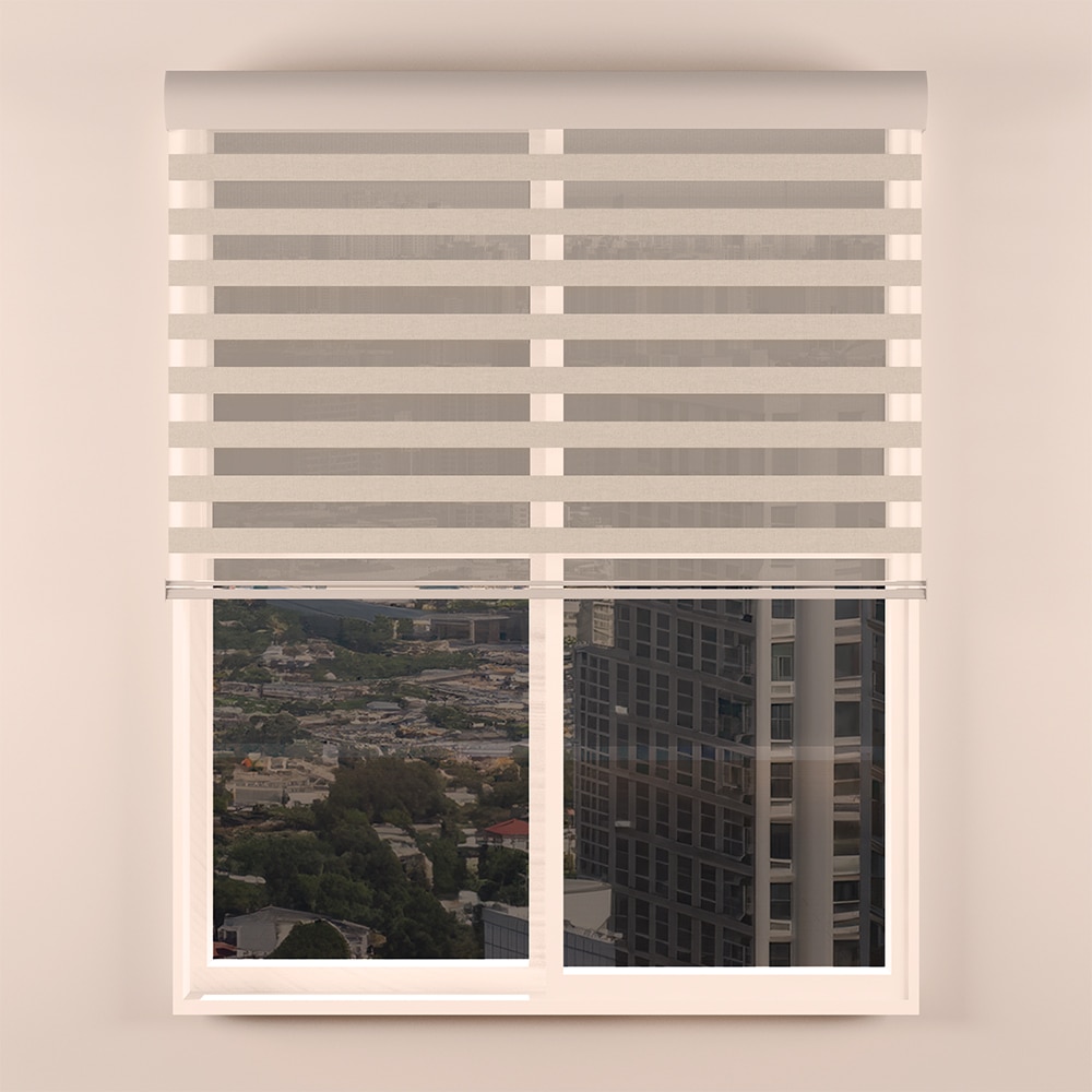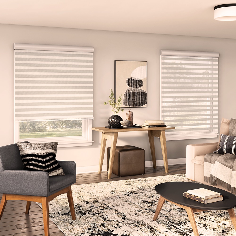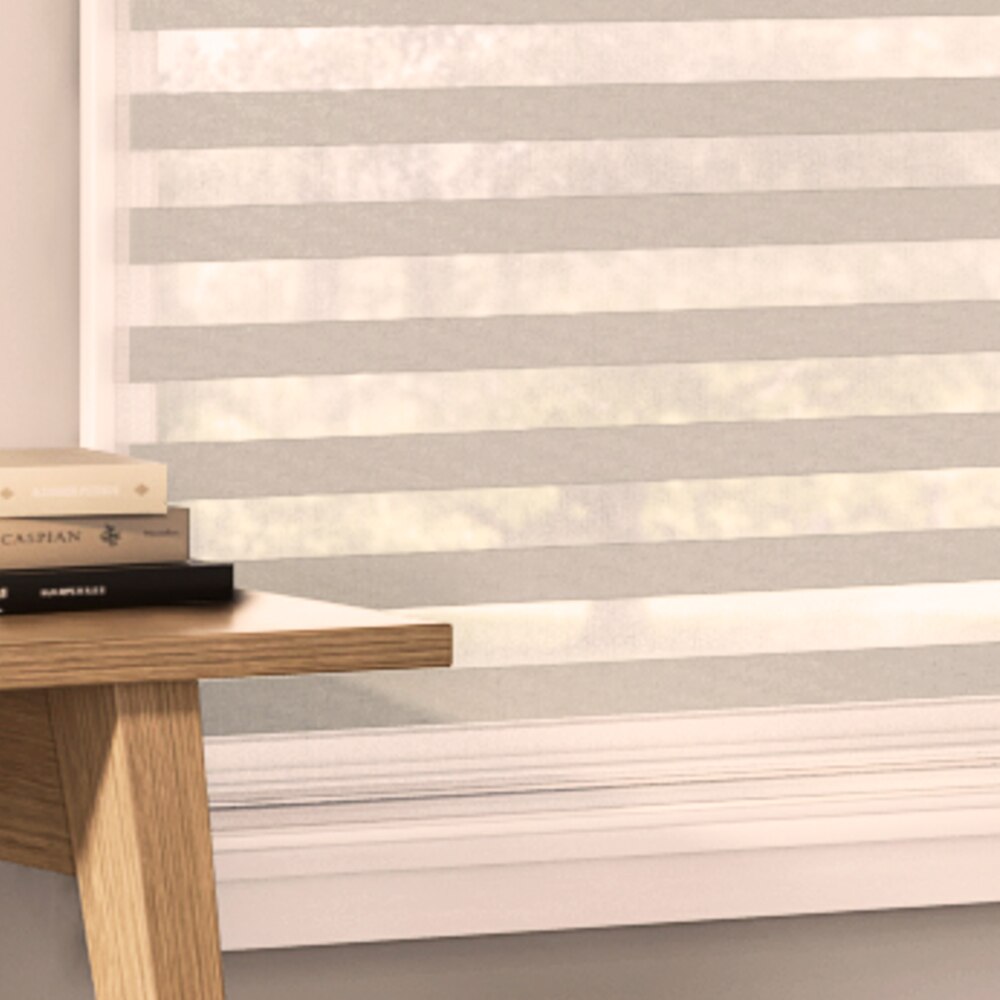 The exceptionally designed American Blinds Advantage Flat Sheer Shades is a beautiful product at a budget-friendly price. It offers the flexible light control of a blind while providing the light-filtering effects and soft look of a fabric shade. Fabrics are made with 3" alternating translucent light-filtering and sheer horizontal stripe patterns that can be adjusted to allow light into your room or provide privacy. Choose from a range of neutral textured or solid colors. When raised, the shade will disappear into an elegant color coordinated cassette headrail and brackets.