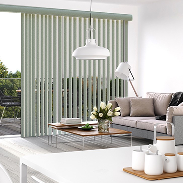 Available in a wide range of bold and neutral colors and patterns, the 3.5” wide PVC slats of our American Blinds Advantage Vinyl Vertical Blinds provides excellent light control for patio doors and large windows for an affordable price. Choose a clean, smooth finish or a designer texture for a simple, but elegant look to suit your taste. Operate your vertical vinyl blinds with a standard wand control and offer your choice of slat stacking positions for an optimal view.