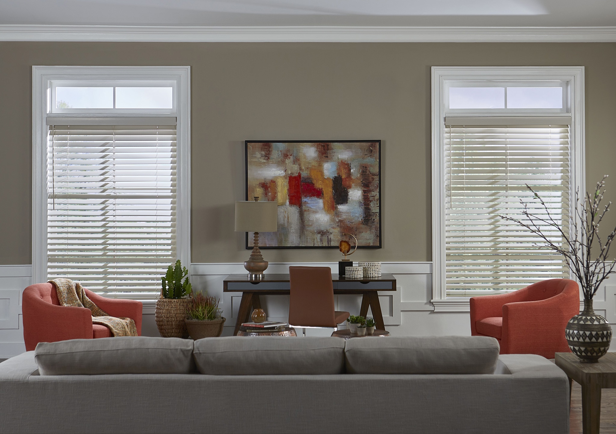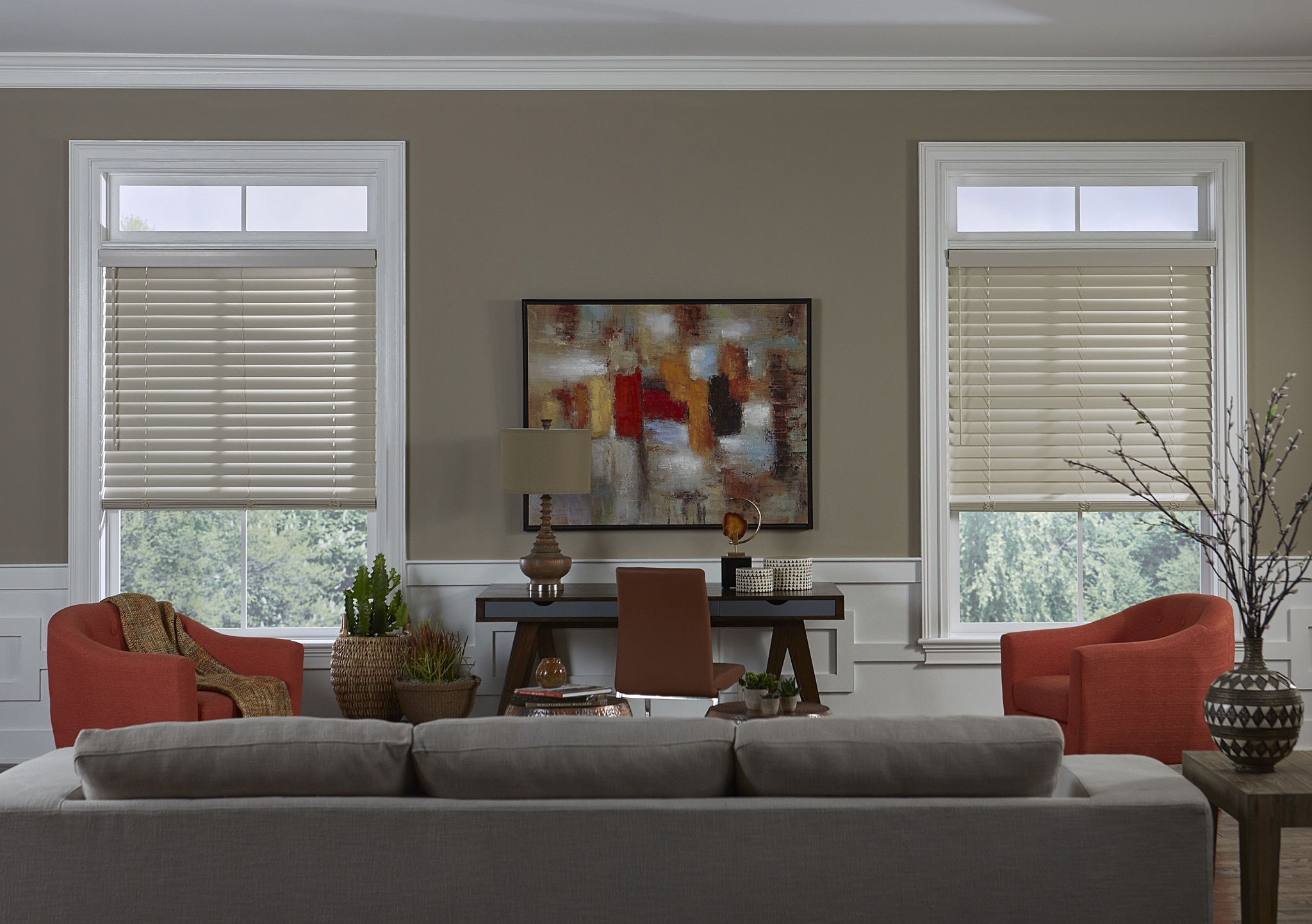 Stylish American Blinds Legacy 2 1/2 Inch Wood Blinds are offered in a range of beautiful painted white tones and stained finishes, all treated with a protective, UV-resistant finish. They are made from genuine basswood and feature classic wood grain. These wood blinds feature 2 1/2-inch slats for a bold look in your window and a less obstructed view of the outside. The trapezoidal bottom rail ensures tighter slat closure. Choose from different valance options that will match any décor style. Various upgrades are offered so you can further customize the look of your blinds to fit your style. The standard slat ends are square but can be upgraded to rounded corners if you prefer, and multiple sized cloth tapes in a variety of fashionable solid and patterned colors are available for an extra touch of style. You may opt for the routeless slat upgrade, which eliminates holes in the slats for better light control and complete privacy. Cordless lift control included or upgrade to cord loop lift and tilt as well as motorized lift and tilt.