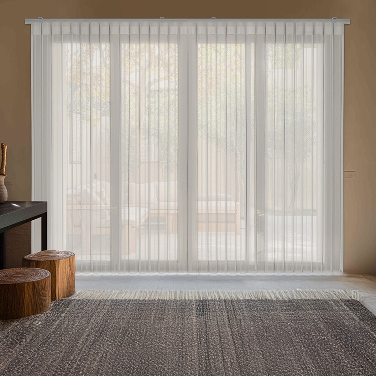Enjoy complete control of your best views with panes of soft, elegant fabric and smart design. The American Blinds Legacy Vertical Sheer Shades offer both sheer and solid view options in one shade with a unique walk-through arrangement. Combining the function and cordless convenience of vertical blinds with the sophistication and gentle ambiance of shades, these window treatments provide the versatility that may be lacking for most larger windows and doorways. Each gorgeous vertical panel is designed to include both sheer fabric and solid fabric configured to let you control light and privacy with the simple turn of a wand. When closed, twist your wand fully left or right to experience a transparent view with sheer materials or more privacy from a solid fabric available in several elegant colors. Fabrics are available in both light filtering or room darkening options.