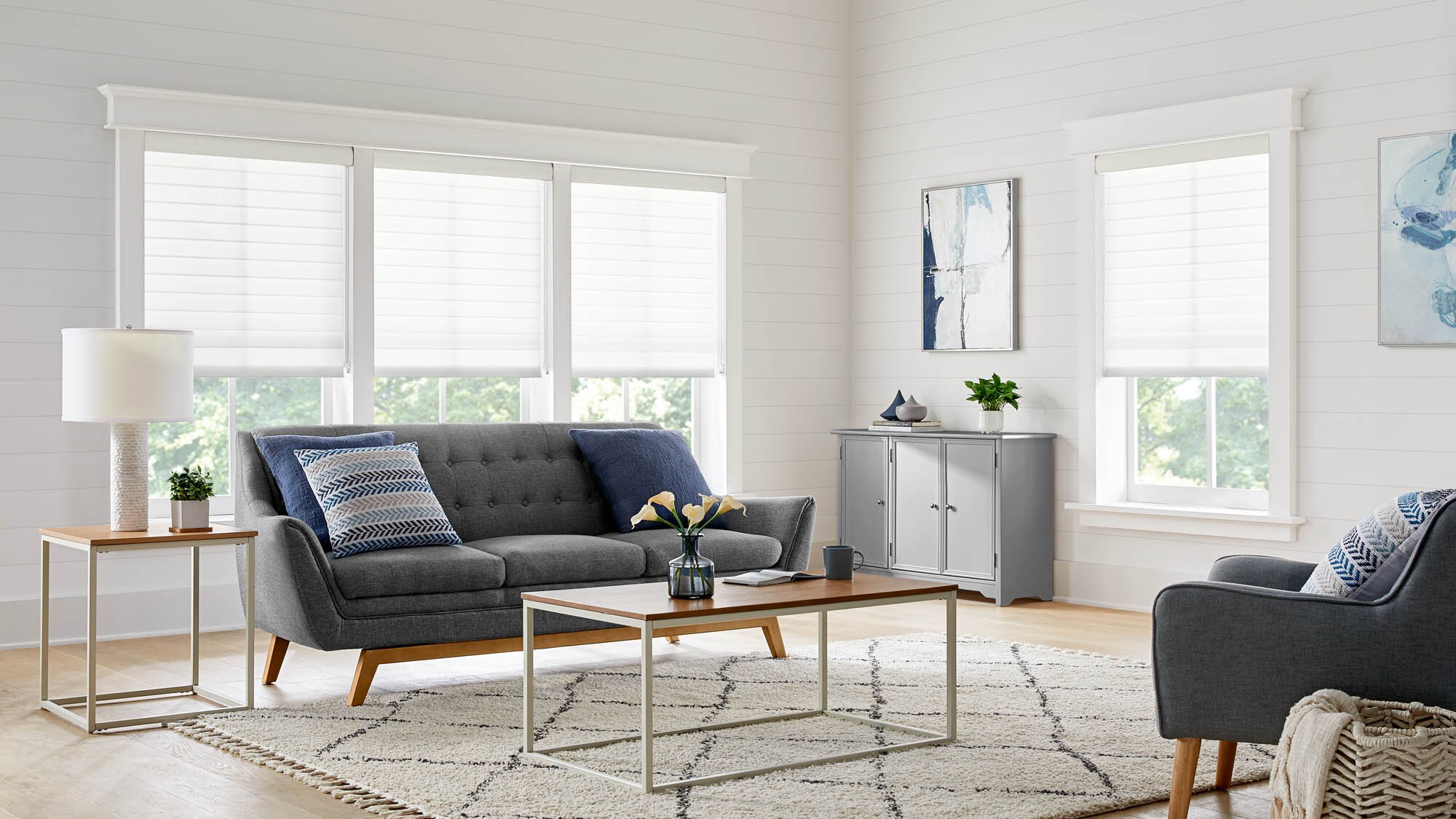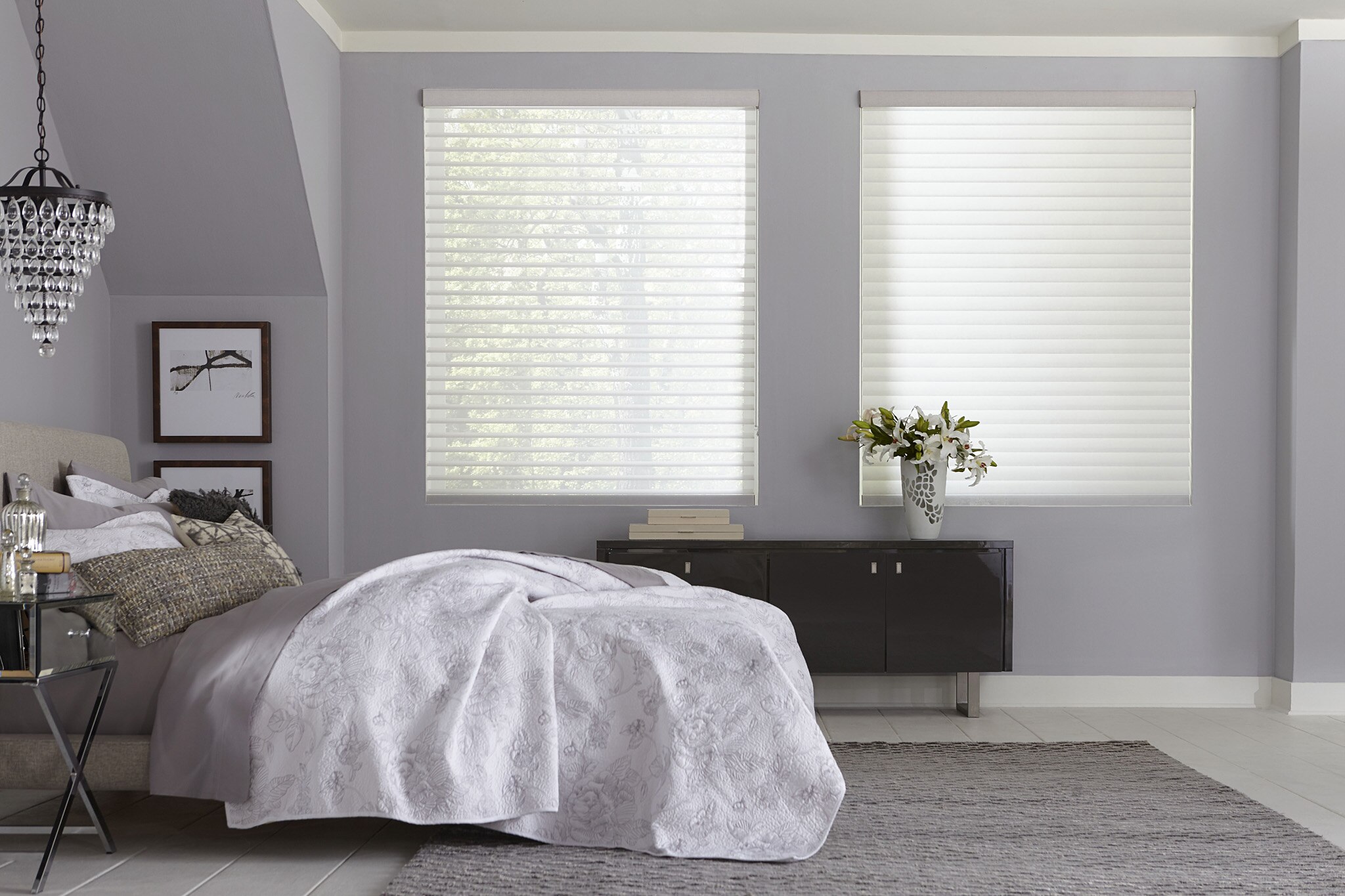 Welcome soft, filtered sunlight into your room with the American Blinds Trademark Light Filtering Sheer Shade, which combines a sophisticated sheer shade with the flexible light control of a blind. These shades are designed with light-filtering fabric vanes suspended between two layers of sheer fabric, which diffuses sunlight when the vanes are open. Raise the shades for a clear, unobstructed view to the outside. Choose from a color palette of soft, neutral solids and printed linen patterns to enhance the look of your window in any room. The vane sizes are available in 2’’, 2 ½ ‘’and 3’’. Comes standard continuous cord loop lift and a matching fabric wrapped cassette . Also available in cordless lift and motorized wand lift.