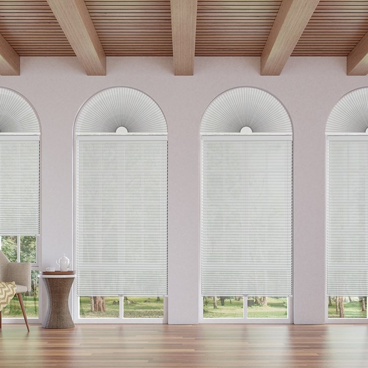 Bali Light Filtering Arches are a stylish and functional choice for your hard-to-reach arch windows. These arches will insulate against outdoor temperature and diffuse light entering the room while providing privacy. The light-filtering honeycomb fabrics are rich in texture, pattern and design to give the arch window shades a distinctive look. From Dove Gray or Buttermilk to Red Velvet or Charcoal, the wide range of available colors can complement any décor, enhancing the overall appearance of the room. Pleat sizes come in your choice of 3/8’’ or 3/4'’ and single- or double-cell design. Choose a double-cell arch for the best energy efficiency.