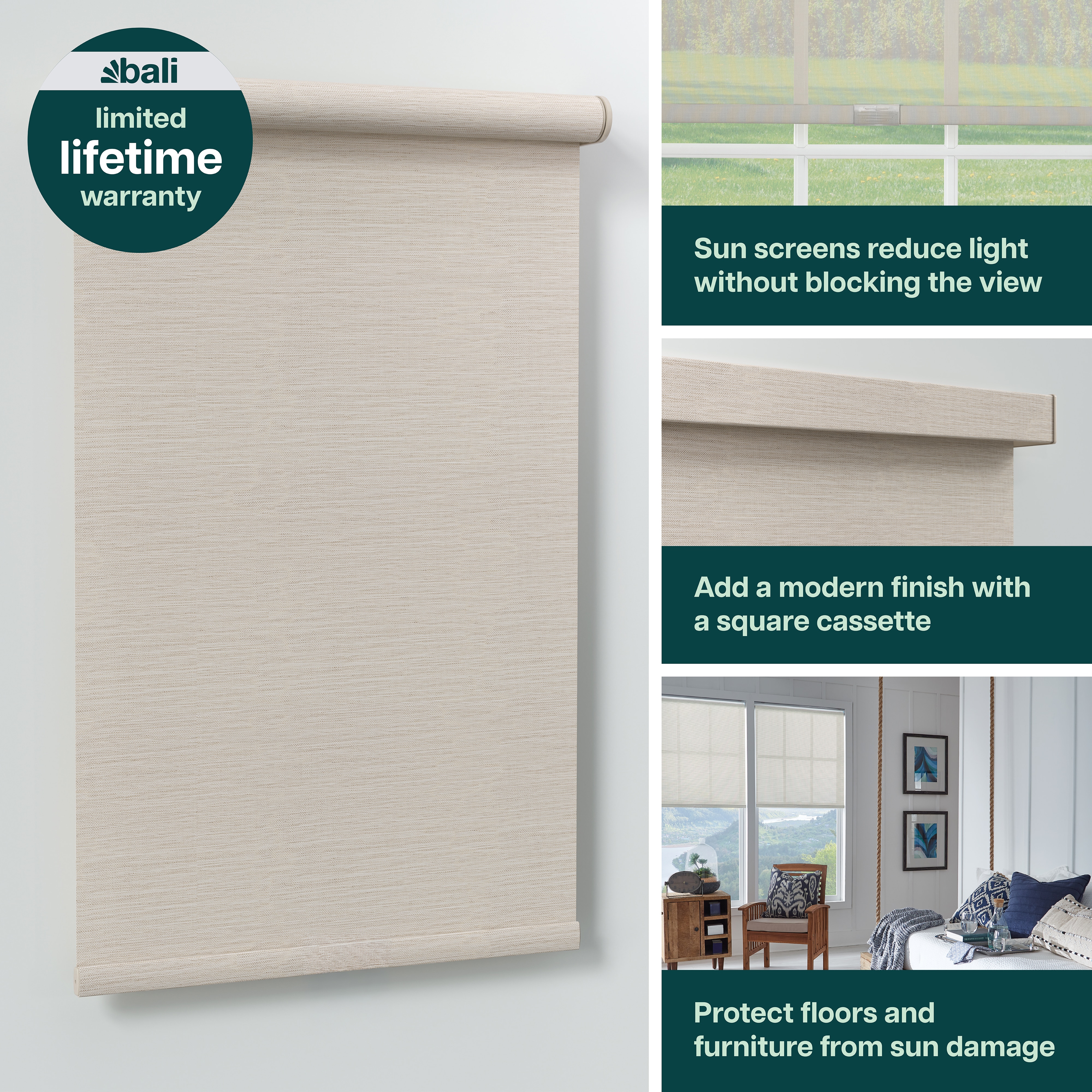 PLEASE NOTE: Solar Shades do not provide privacy at night. If privacy at night is required, consider the Bali Light Filtering Roller Shades or the Bali Blackout Roller Shades.