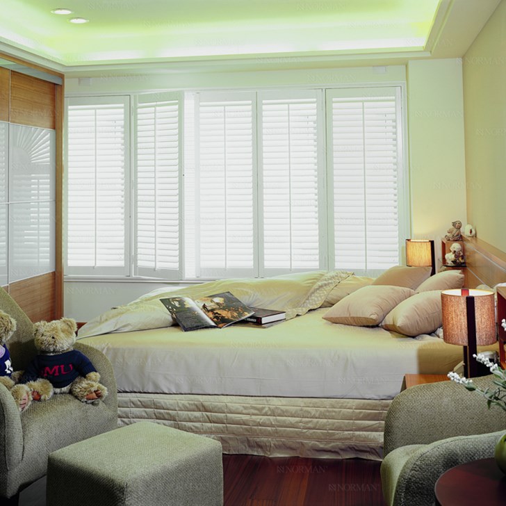 - Configure these shutters however you like. They are available with both inside mounts and outside mounts at a variety of louver sizes. Choose larger louvers for large picture windows, as smaller louvers can look too busy.