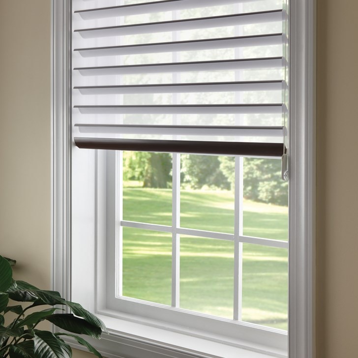 • Made from fabric vanes that float gracefully between two layers of sheer fabric