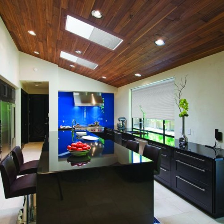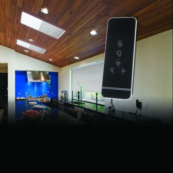 - Remote-controlled blackout shades are easy to use and take the challenge out of operating a skylight in a high ceiling