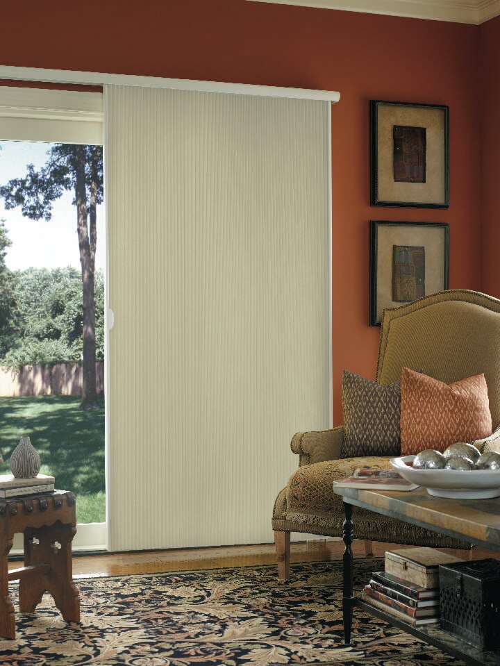 Discover a modern vertical solution for your windows with a designer touch. Great for media rooms and day sleepers, vertical blackout shades will protect your home from ultraviolet rays and harsh weather extremes with extra insulation and additional sound absorption offered along with superb light blocking abilities. Select among muted earth tones and pastels backed with a white fabric for exterior consistency. Single and double cell construction is available and all fabric is stain-resistance and anti-static with matching vertical rails included. Operate your vertical vinyl blinds with a standard wand control and offer your choice of slat stacking positions for an optimal view.