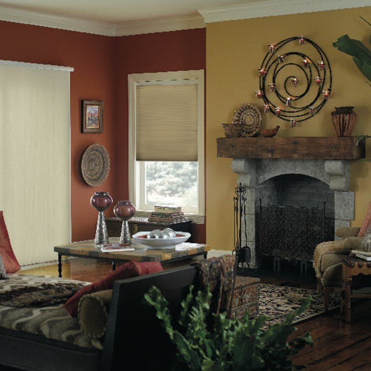 Discover a modern vertical solution for your windows with a designer touch. Great for media rooms and day sleepers, vertical blackout shades will protect your home from ultraviolet rays and harsh weather extremes with extra insulation and additional sound absorption offered along with superb light blocking abilities. Select among muted earth tones and pastels backed with a white fabric for exterior consistency. Single and double cell construction is available and all fabric is stain-resistance and anti-static with matching vertical rails included. Operate your vertical vinyl blinds with a standard wand control and offer your choice of slat stacking positions for an optimal view.