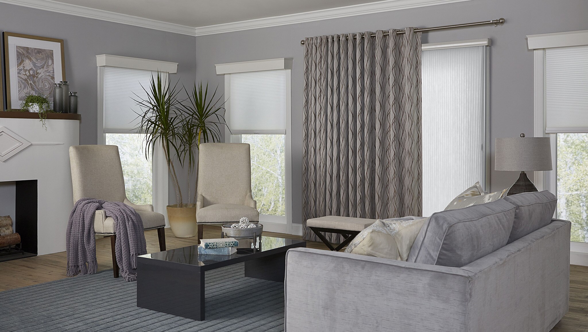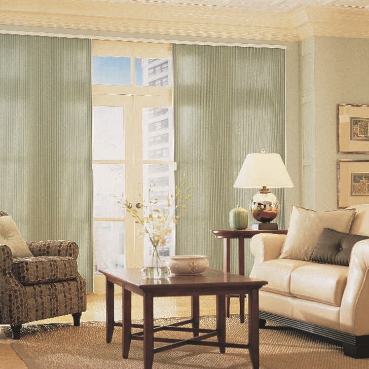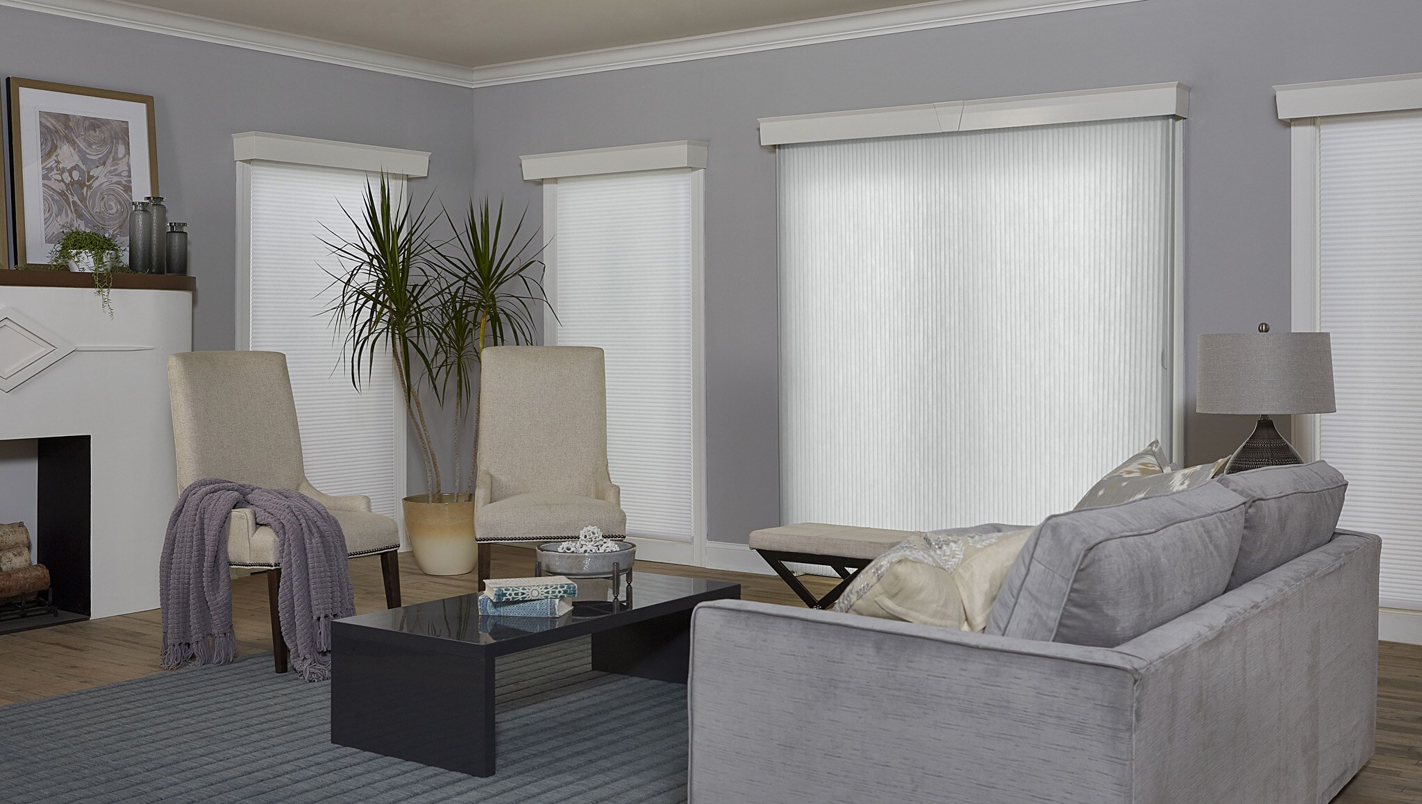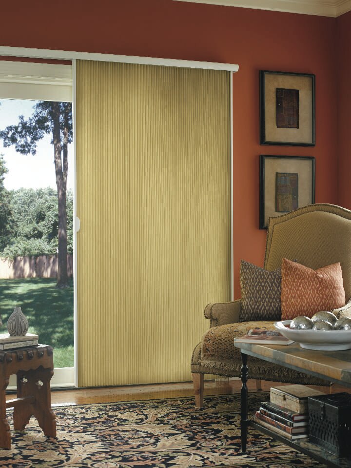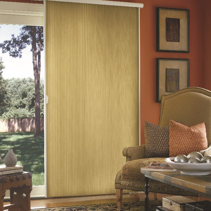 If you’re looking for an eye-catching substitute for drapes or traditional vertical blinds for large windows or patio doors, the Bella View Prestige Light Filtering Vertical Cellular Shade makes a statement while providing improved insulation and also blocks harmful UV rays. Choose from dozens of shades from fun shades of violet to muted natural earth tones; all with white backing for a uniform home exterior. These shades also feature a hole-free design for more privacy, sturdy top, and rails and are safer for kids and pets since there are no cords. Cellular shades are also easy to clean and maintain.