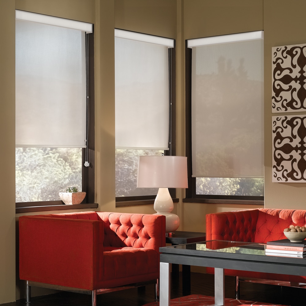 Choose your own level of openness and privacy along with a selection of neutral tones or trendy dark shades of grey and black for a clean and unique presence throughout your entire home or office space. These shades dramatically reduce glare and heat gain and provide a comfortable, energy-efficient home environment while preserving your view of the outdoors without sacrificing natural light.
