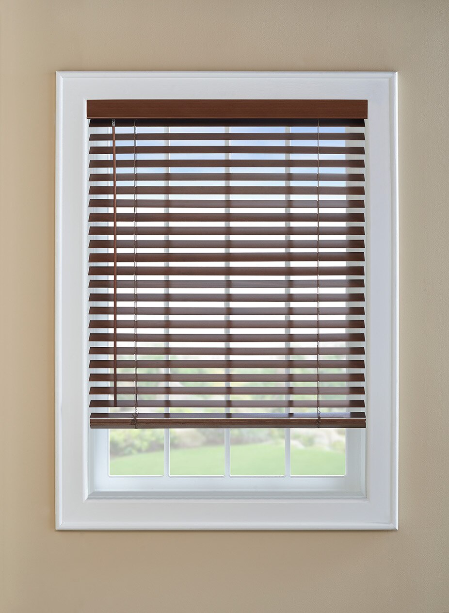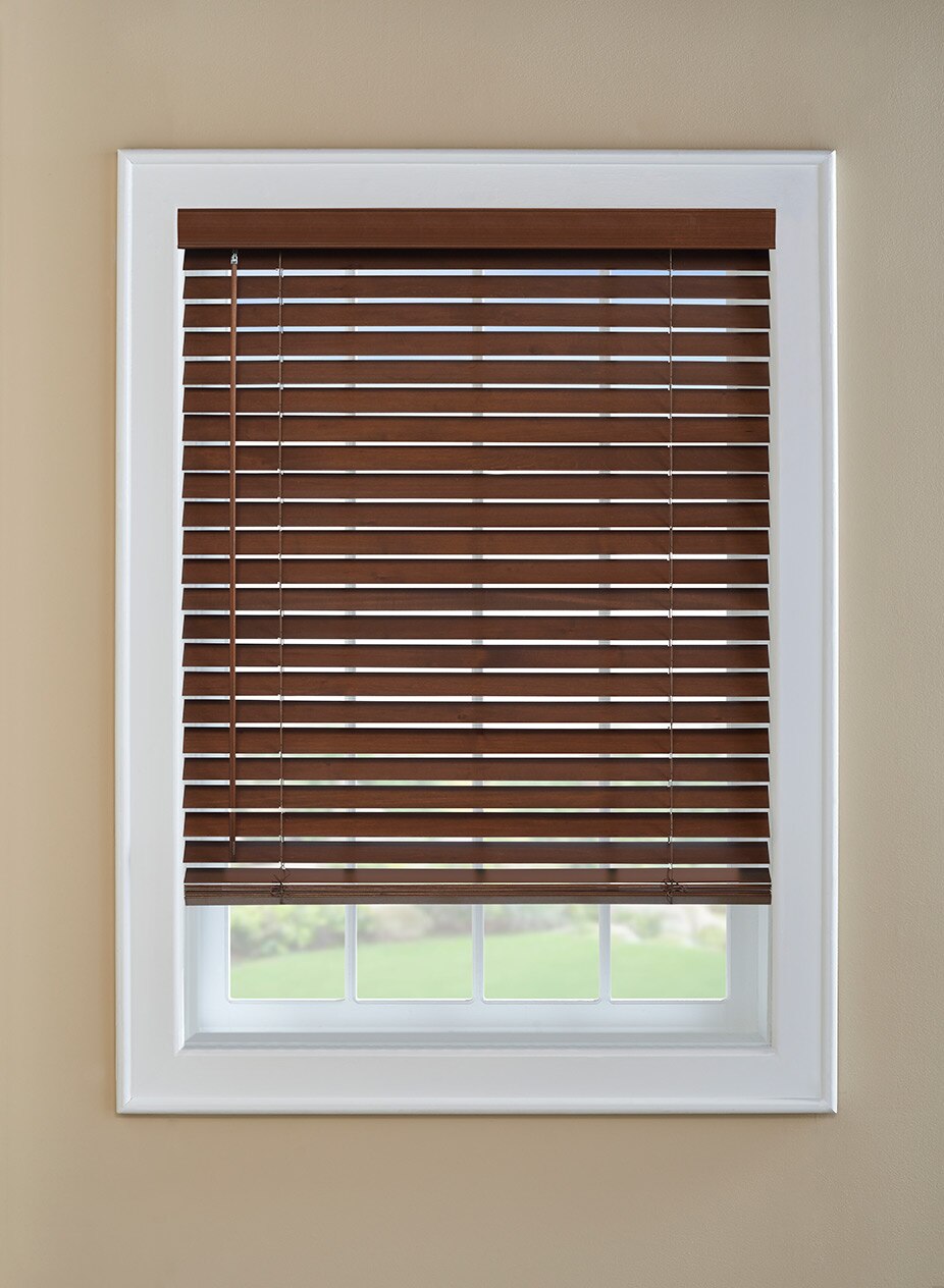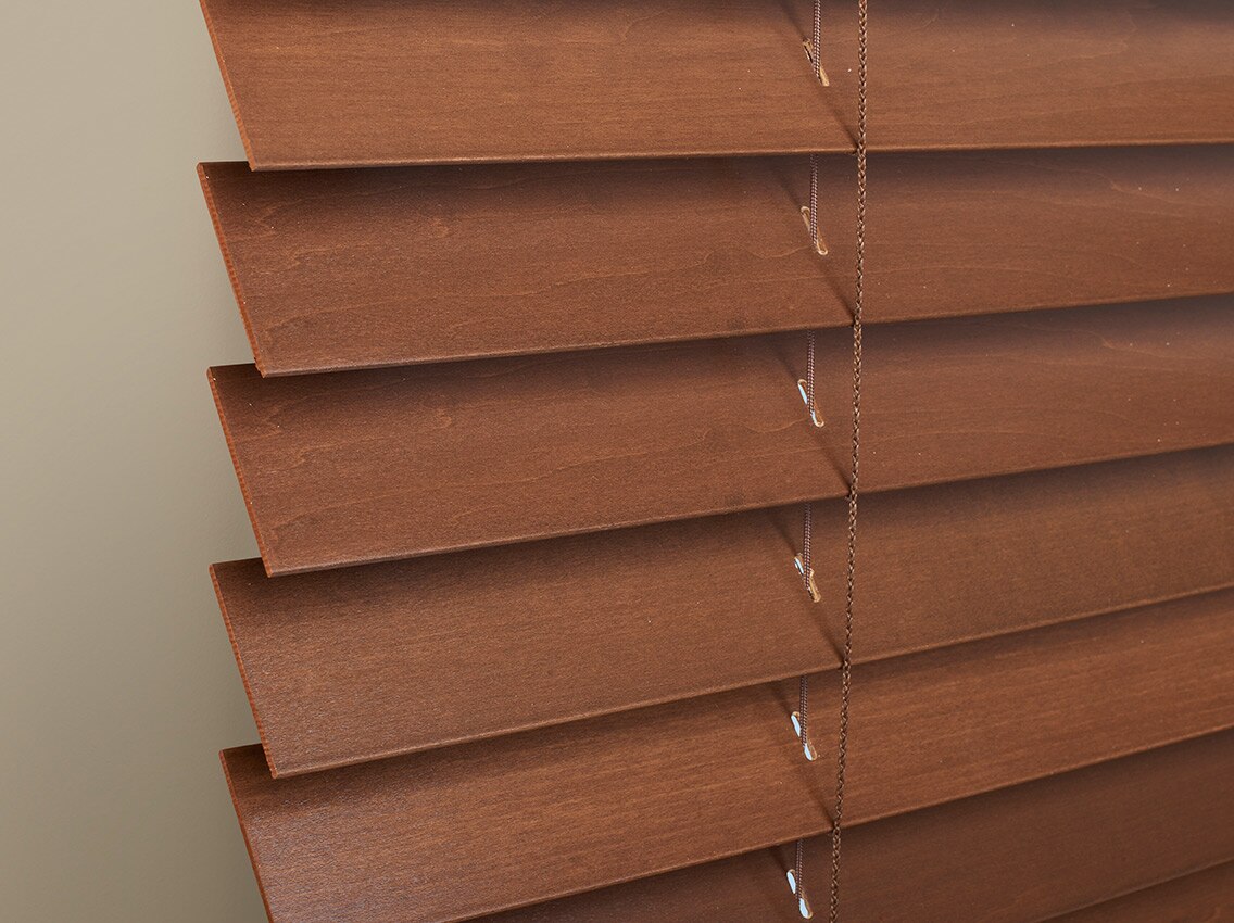 Bring the natural splendor and warmth of wood into your home with Levolor 2" Classic Real Wood Blinds. These versatile blinds feature 2-inch slats made of luxurious North American hardwood, offered in a variety of popular finishes to complement your color scheme and style of décor. Each blind comes with a matching valance in your choice of either Traditional or Contemporary style. The Classic Wood Collection offers a choice of either wand- or cord-operated tilt. The Cordless control upgrade eliminates the clutter and hassle of tangled lift cords. Choose the LightMaster™ upgrade for tighter closure, which provides optimum privacy and light control.
