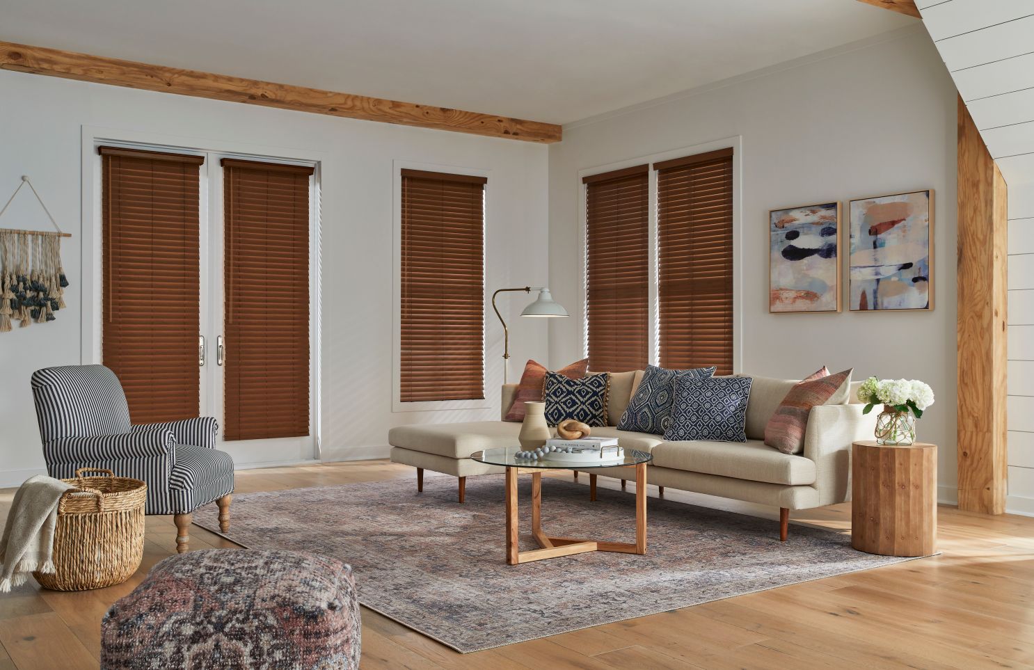 Get an upscale exterior view for less with LEVOLOR Cordless 2 Inch Classic Faux Wood Blinds, featuring the unique look and style of real wood at an economical price.
