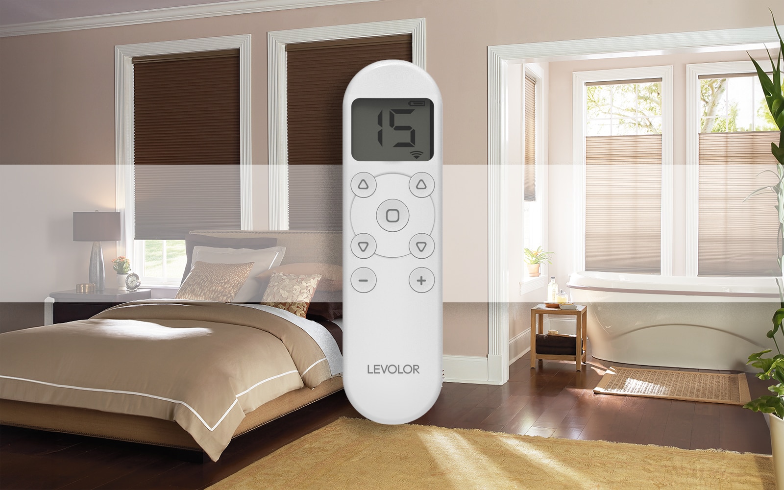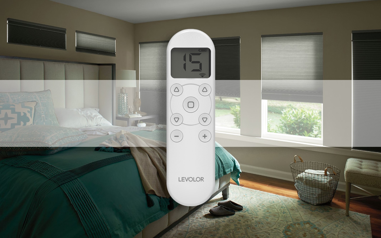 The new Levolor InMotion15-channel Top Down Bottom Up and Day Night remote gives you just what you need to set your favorite shade positions, keeping things light and easy. Give yourself the flexibility of choice: Use the remote to adjust the blinds behind you when you’re sitting on the sofa. Use the app to lower all shades at the front of your house as you’re walking out the door. With 15 channels, you can set your blinds and shades to create the light and privacy you want for every part of your day, from early morning stretching to family dinners and bedtime stories.
