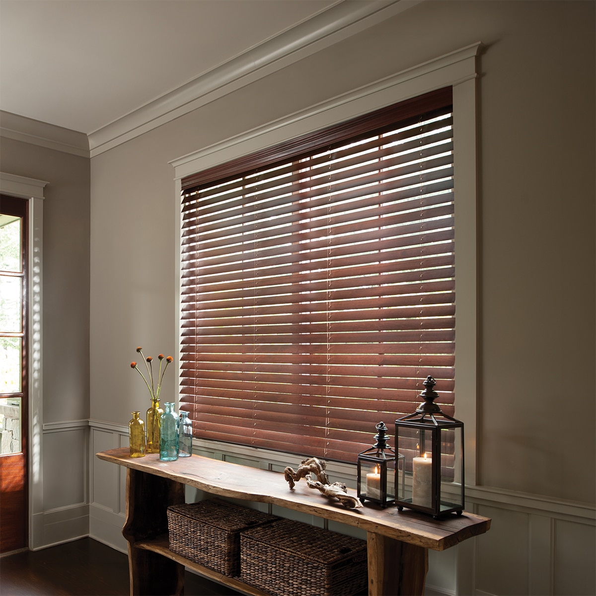 Levolor Motorized 2 1/2 Inch Real Wood Blinds bring the genuine beauty of hand-selected hardwood to any window - with effortless motorized control built in. Choose from 10 premium finishes including painted whites and creams, plus rich oak, pine, and mahogany stains.
