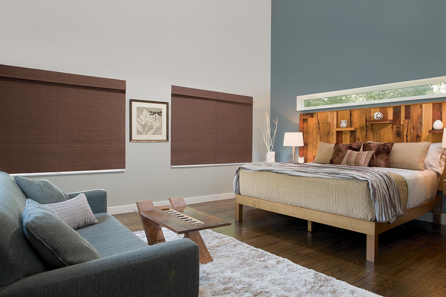 Room Darkening Liner : Adds a room darkening layer behind the natural weave to minimize light and significantly increase privacy, while preserving the organic warmth and look of the shade from the room side.