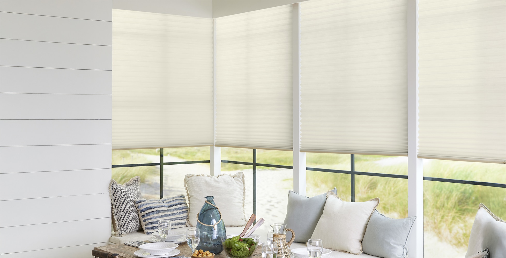 - Curated Light: Options from the delicate SheerCell™ to trusted light filtering fabrics ensure your desired level of illumination and privacy is always attainable.