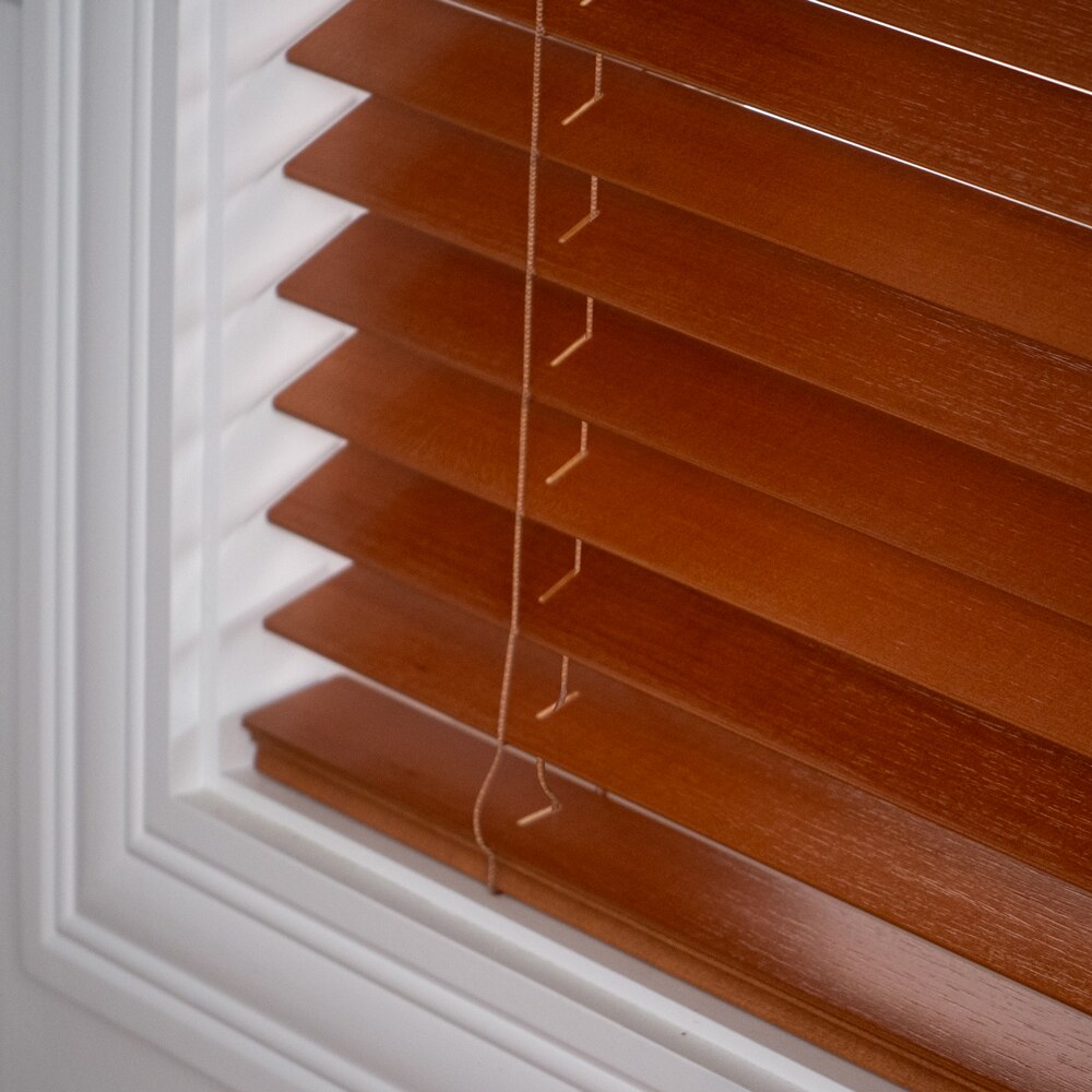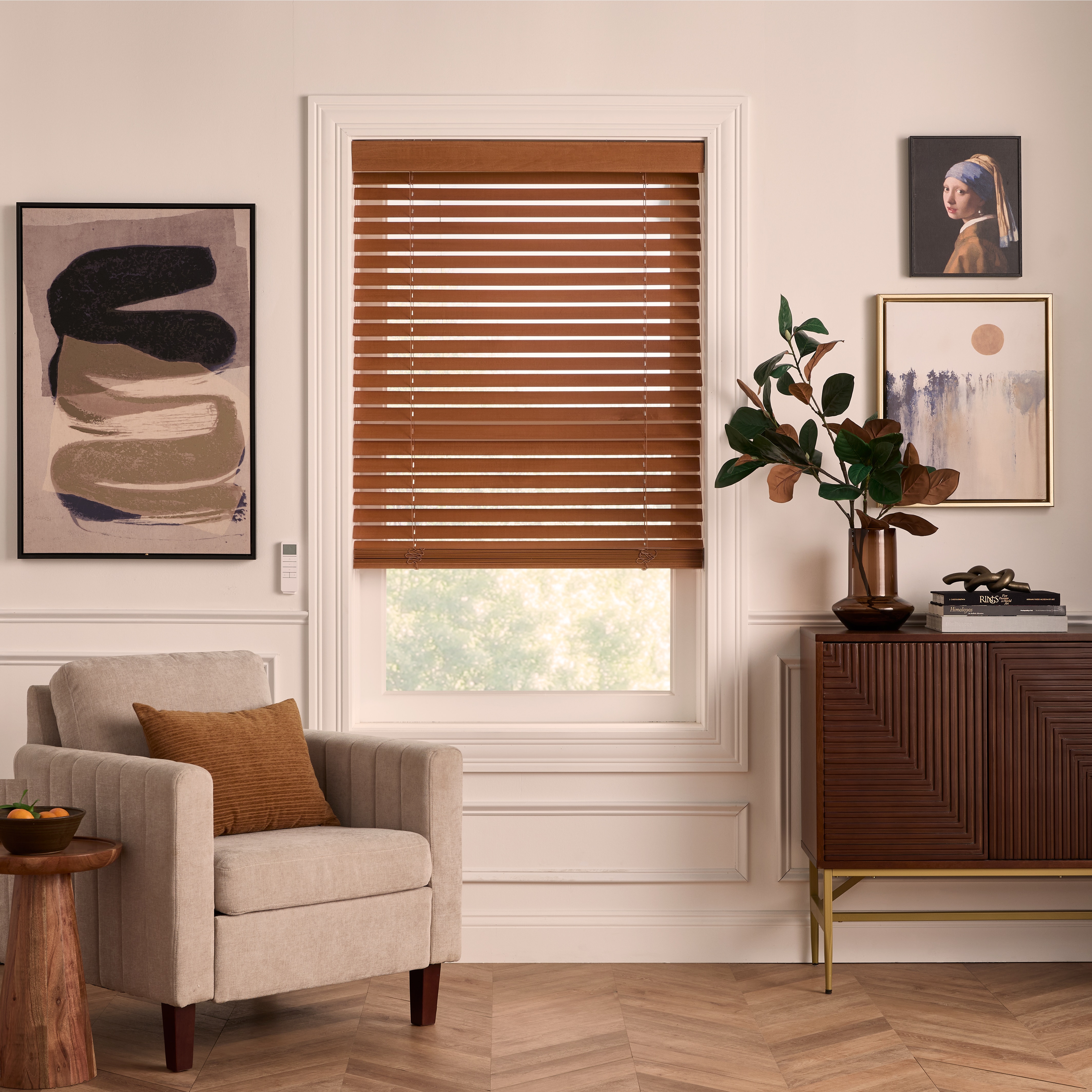 Select the SouthSeas 2 Inch Wood Blinds from American Blinds and find the perfect, furniture-grade dressing for your windows. Choose from over 70 designer-quality painted and stained finishes that range from rustic to modern and offer a rainbow of colors. Cover your route holes with a cloth tape upgrade, which adds a touch of pizzazz and style to your blinds with a spectrum of solid colors and fashionable patterns to choose from. Select from three different valance options that will match any décor style. Choose slats that are squared or upgrade to rounded corners. Standard cordless lift and wand tilt or upgrade to cord loop lift and tilt.