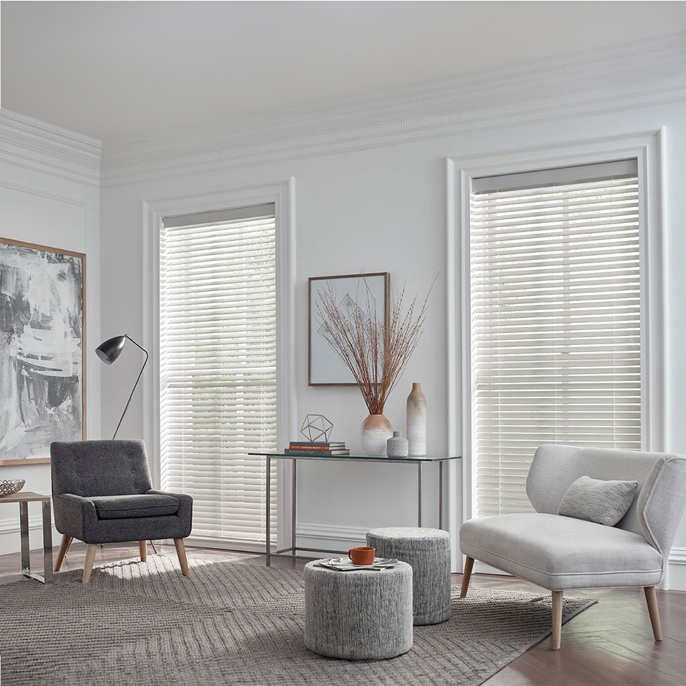 Available with a unique motorized lift and tilt option, for convenience and hard-to-reach windows. These are powered by either a battery wand or a plug-in cord. Three valance options are available to finish your blind with a custom look.