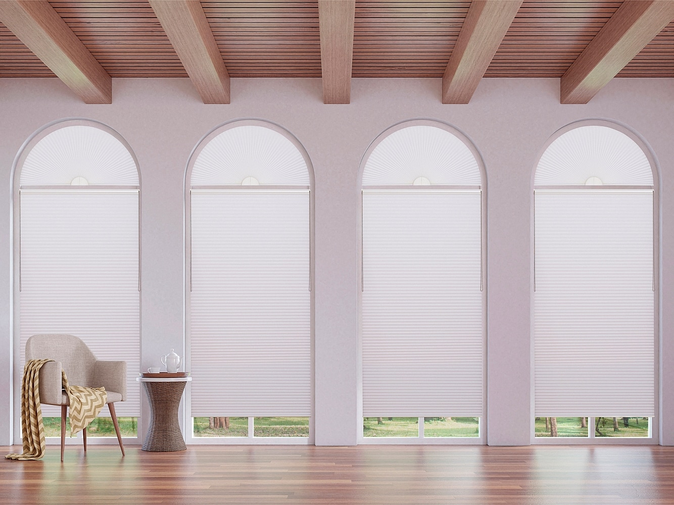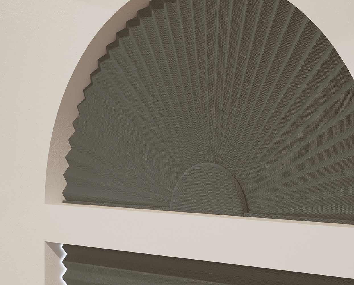 SouthSeas Blackout Cellular Arches coordinate with our SouthSeas Blackout Cellular Shades to provide a coordinated look to your home. Available in the same colors as the SouthSeas cellular shade, these arches are made from spun lace, not papery thin, and offer color matching rails. These arches are inoperable, meaning they are always closed and are available for Perfect Arches and Perfect Half Arches.